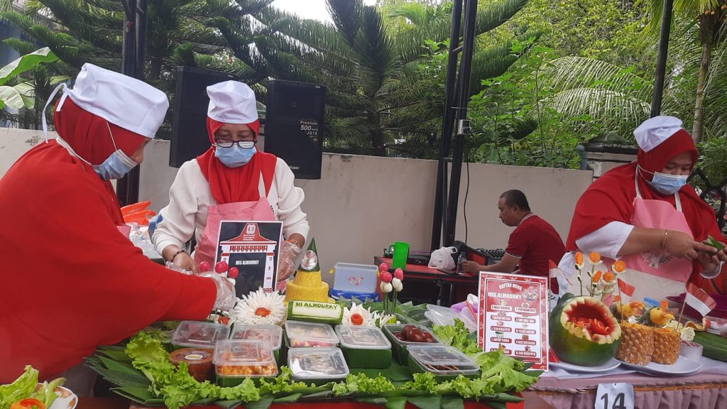 (MIS-ALMOURKY.SCH.ID) – Dalam rangka menyemarakkan Hari Ulang Tahun (HUT) ke-80 Republik Indonesia, Kantor Kementerian Agama Kabupaten Gorontalo menggelar Lomba Menghias Nasi Tumpeng yang diikuti oleh madrasah dan Kantor Urusan Agama (KUA) se-Kabupaten Gorontalo. MIS Al Mourky turut serta ambil bagian dalam kegiatan tersebut dengan menampilkan kreasi tumpeng hasil kerja sama para guru. Tumpeng yang ditampilkan tidak hanya indah secara tampilan, tetapi juga sarat dengan makna kebersamaan dan syukur atas nikmat kemerdekaan.