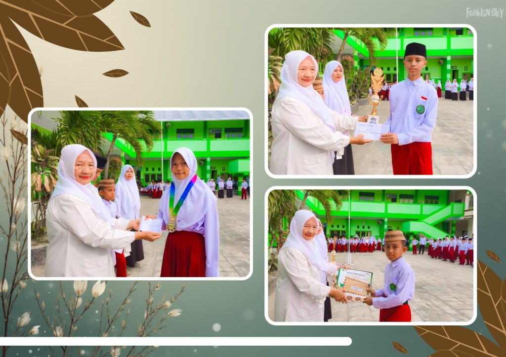 (MIS-ALMOURKY.SCH.ID) – Kepala Madrasah Ibtidaiyah Swasta (MIS) Almourky Hj. Asni Ilham menyerahkan penghargaan kepada para siswa berprestasi dalam sebuah kegiatan yang berlangsung khidmat saat upacara bendera di halaman madrasah, Senin (12/01/2026). Penyerahan penghargaan tersebut disaksikan langsung oleh seluruh siswa, guru, dan tenaga kependidikan sebagai bentuk apresiasi atas kerja keras dan prestasi yang telah diraih.